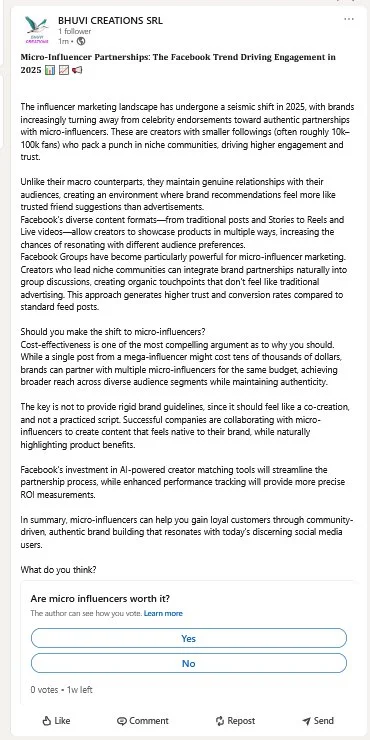 The following examples showcase content created and curated for my personal Facebook and LinkedIn profiles. These posts demonstrate strategic social media engagement, brand building, and professional networking across different platforms.